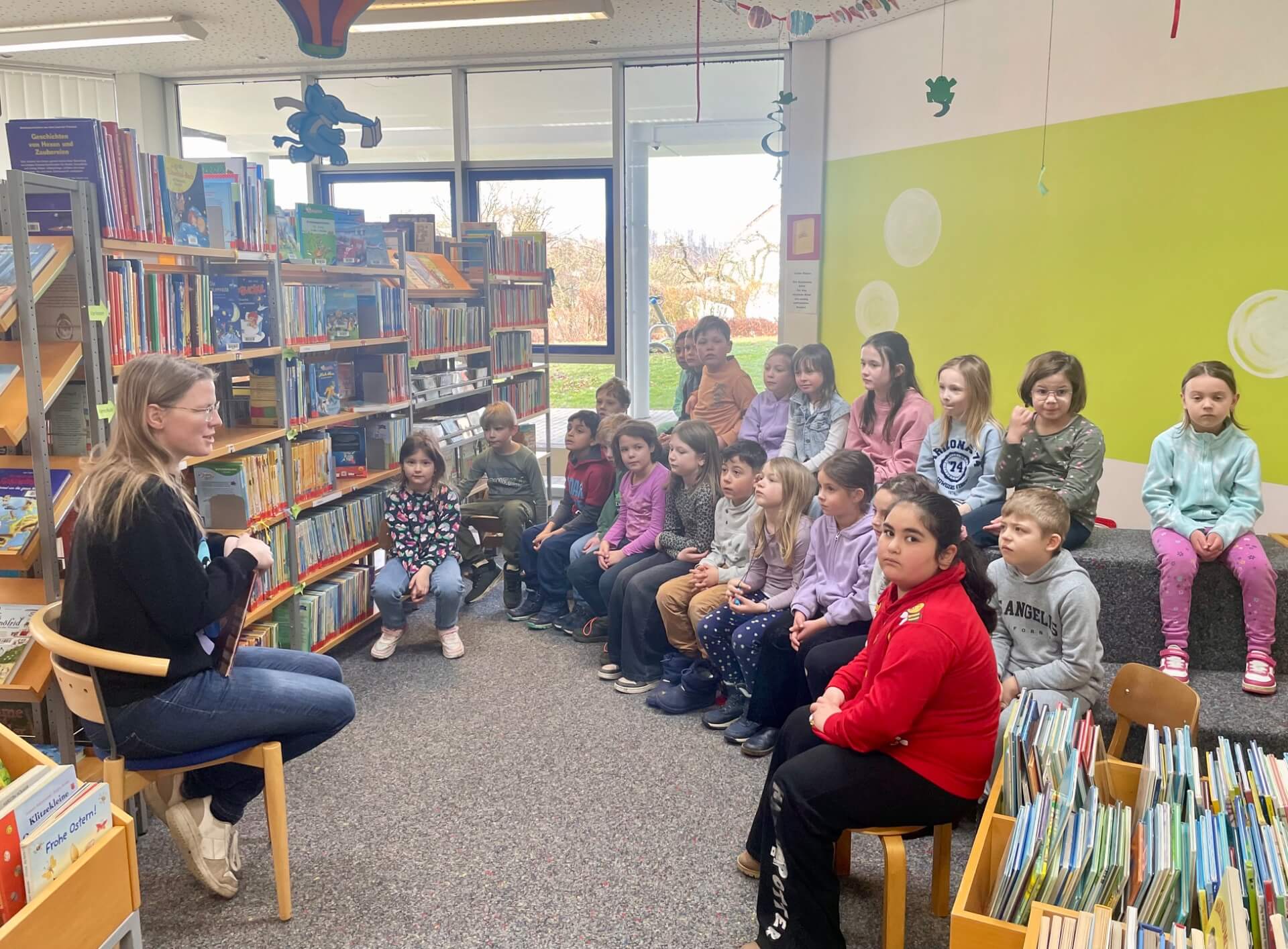 Am Donnerstag, den 12.03.26 besuchte die Klasse 1a die Neustädter Stadtbibliothek. Anhand des Buchs „Pippilothek“ wurden Regeln in einer Bücherei besprochen. Anschließend bekamen die Kinder eine Führung von Frau Helgert durch die Bibliothek. Nun konnten die Kinder sich umsehen und Bücher lesen und am Schluss folgte noch eine lustige Geschichte. Vielen Dank an Frau Helgert für den schönen Vormittag!