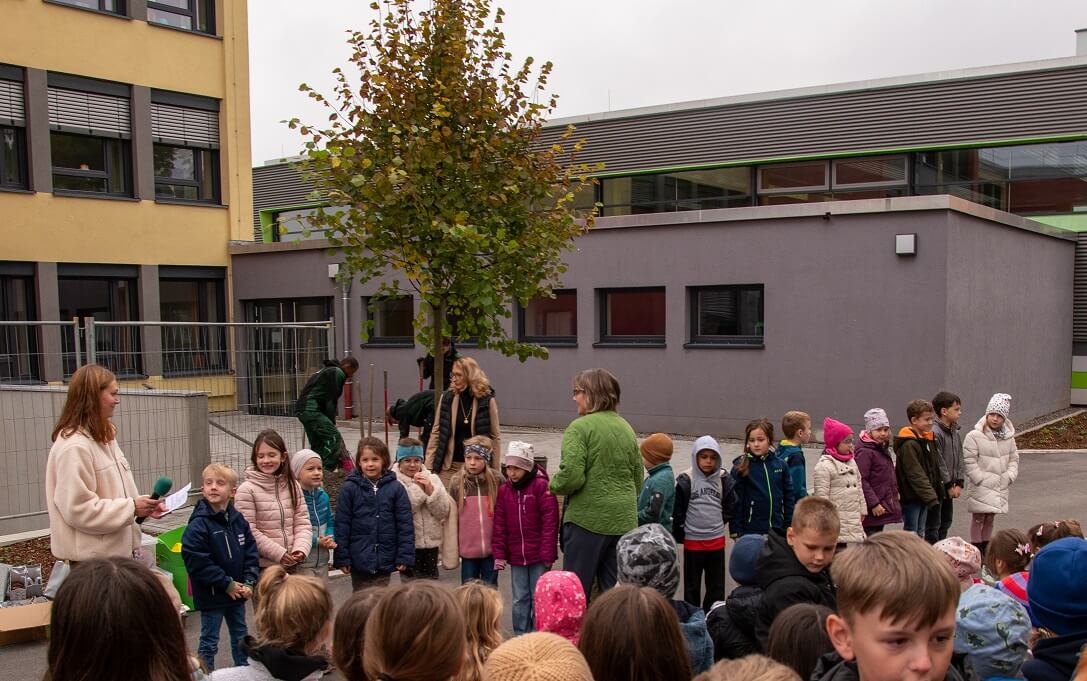 Im Zuge der Veranstaltung haben wir Lieder gesungen, Gedichte vorgetragen und das Beste: es wurde eine tolle Linde (Geschenk des Fördervereins) eingepflanzt – an dieser Stelle herzlichen Dank an die Gärtnerei Steinhilber. Die Linde hat hübsche herzförmige Blätter und wird uns im Sommer Schatten spenden.