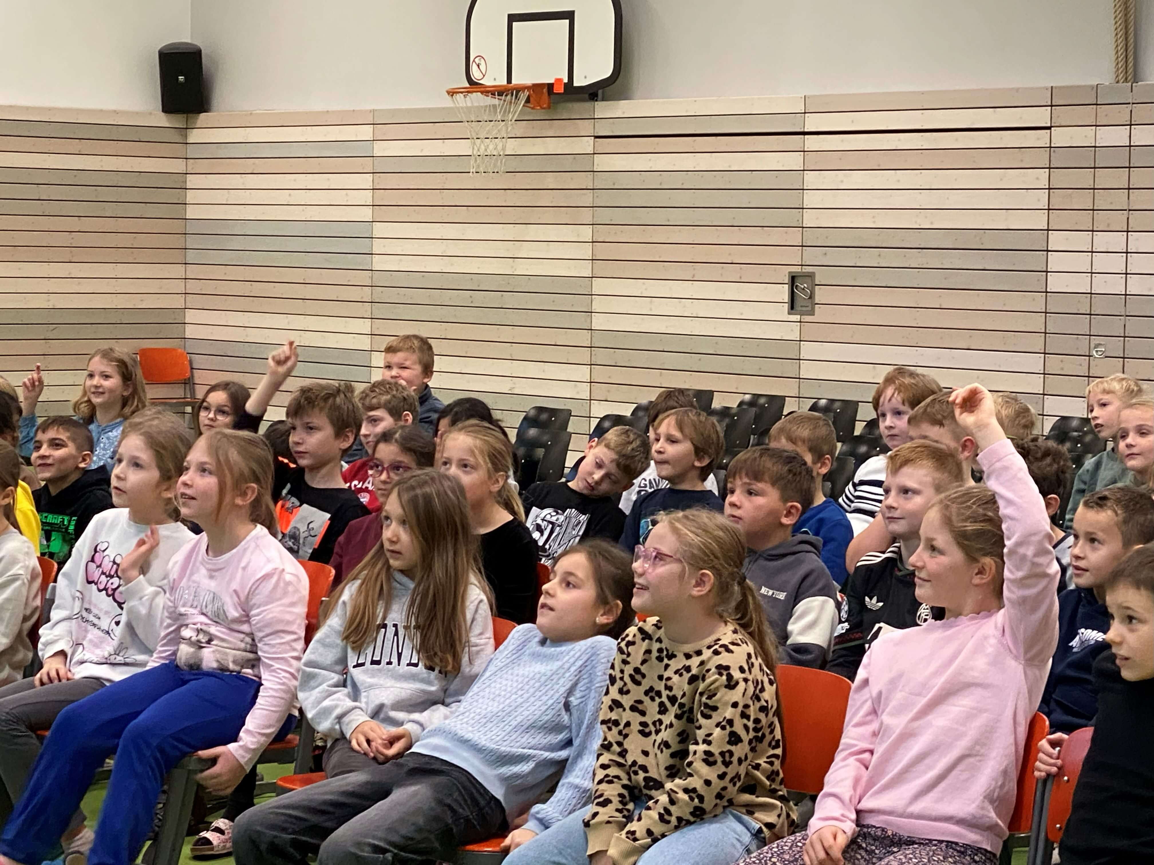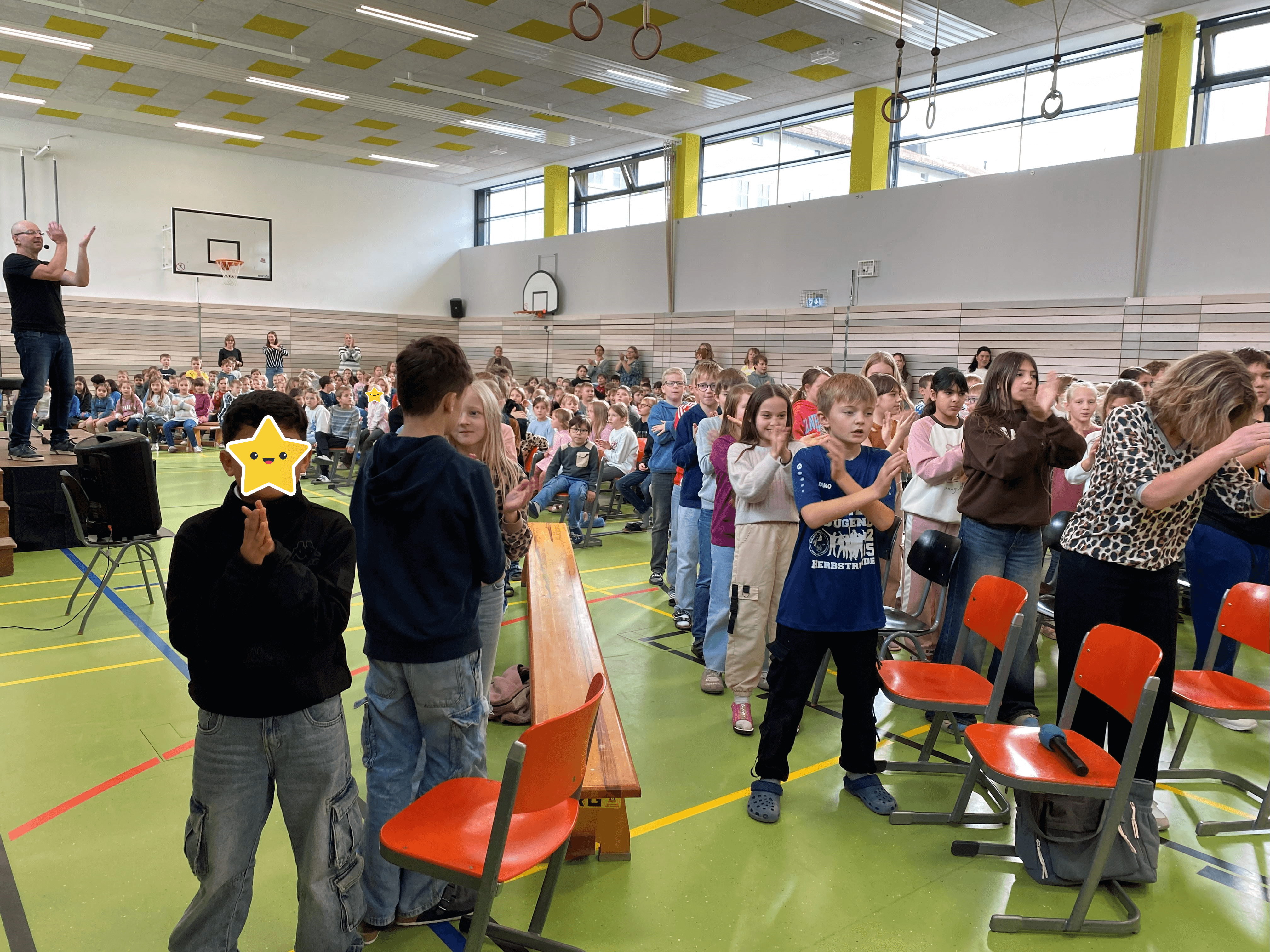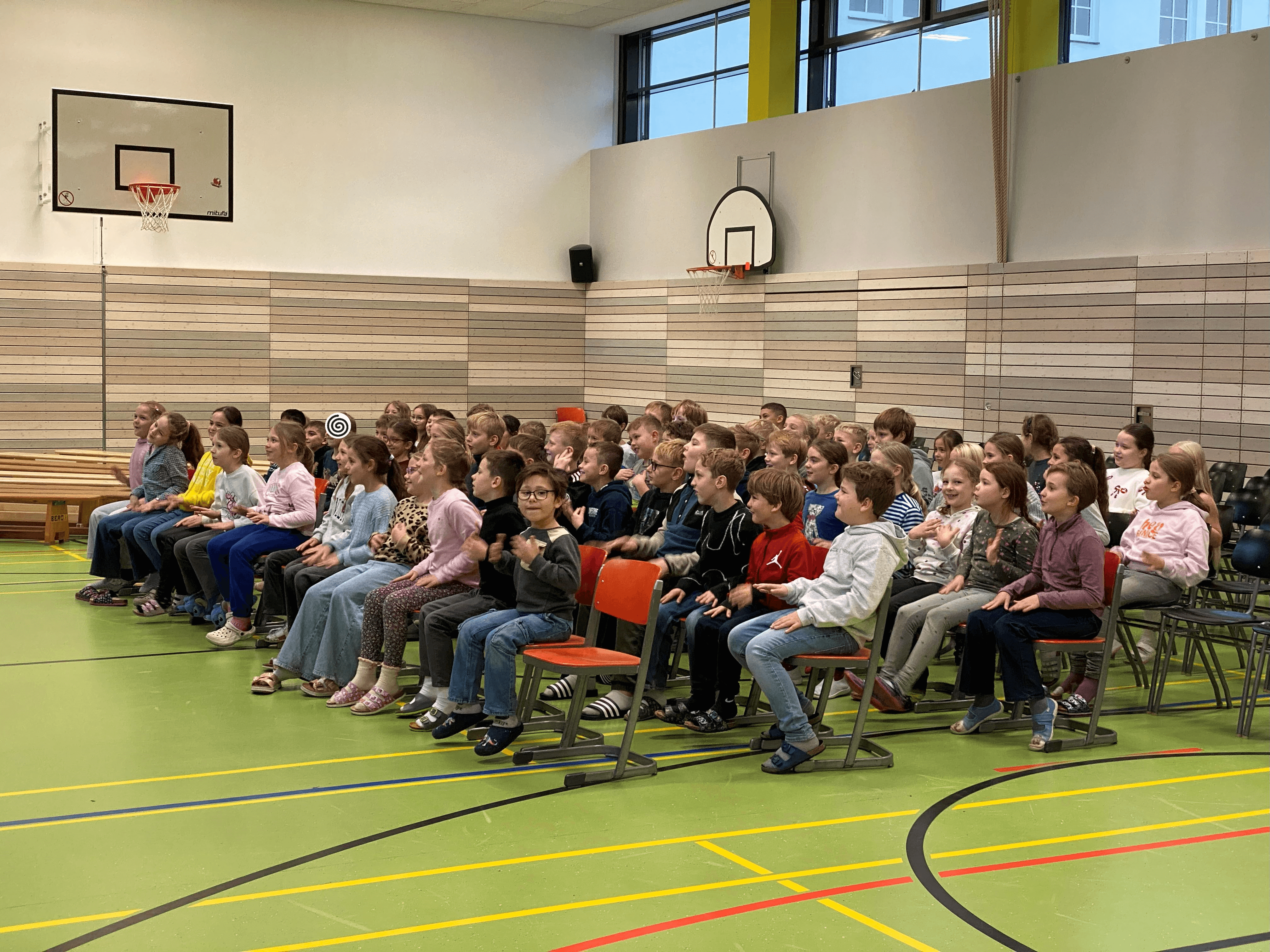 Im November durften wir einen besonderen Vormittag mit Dr. Filz, österreichischer Komponist, Musiker, Autor und führender Experte in Body Percussion, erleben. Jede Jahrgangsstufe arbeitete eine Schulstunde lang an einer Body Percussion-Choreographie. Von trommelnden Bewegungen bis zu synchronen Schlägen entwickelten unsere Kinder gemeinsam mit Dr. Filz ein buntes, lustiges Programm. Dies stärkte nicht nur den Takt, sondern auch Koordination und den Gruppensinn.
