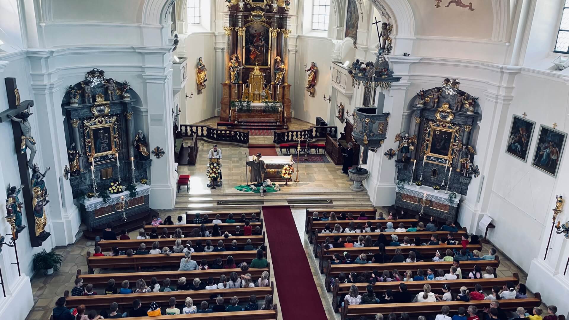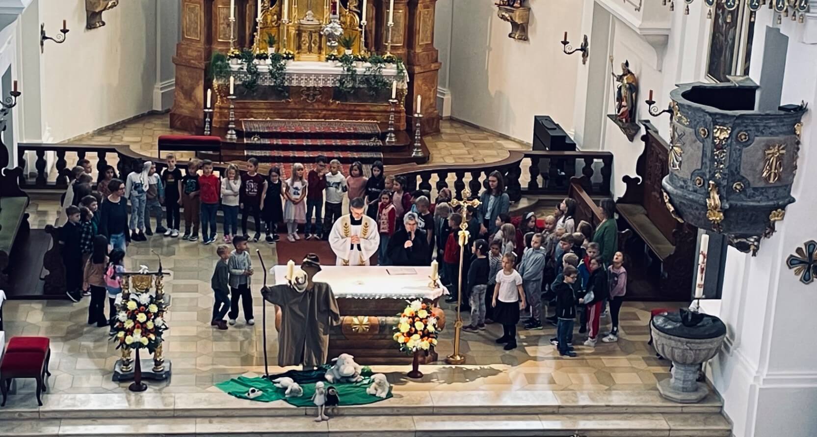 In der ersten Schulwoche pilgerten wir in die Stadtkirche St. Georg. Frau Engelhardt und Pfarrer Kopp hielten dieses Jahr eine schöne Andacht unter dem Thema "Ich bin dein Hirte". Diese hatte unsere Frau Engelhardt zusammen mit Gemeindereferentin Frau Stöckl vorbereitet. An der Orgel begleitete gekonnt Rektorin Frau Merther.